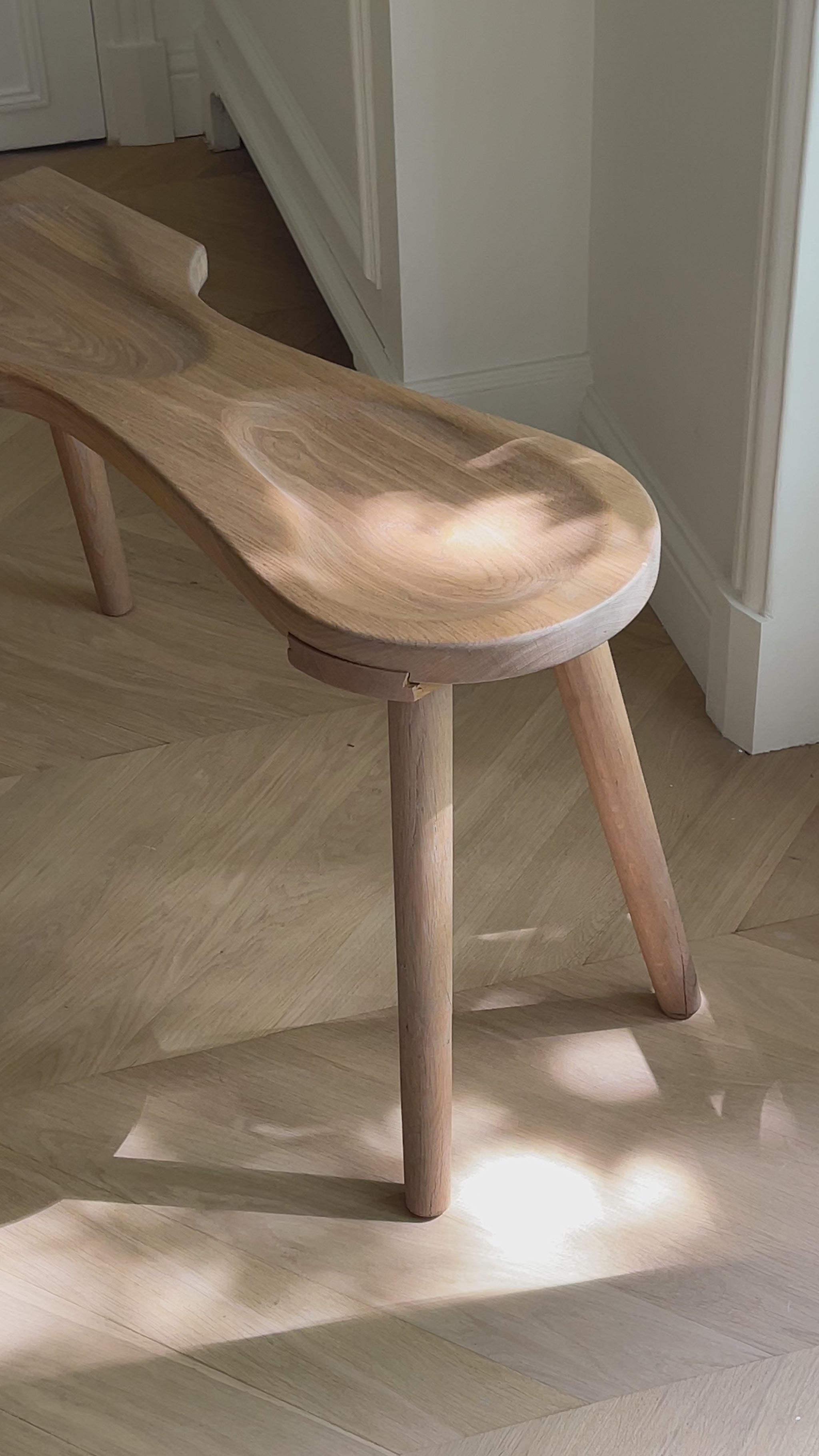 Our handcrafted oak bench 'FRANZ' brings warmth and character to your home, inspired by the typical Austrian wood-chopping bench my grandfather used on his farm. This piece is carefully made by a skilled artisan, highlighting the natural beauty of oak and timeless craftsmanship.
